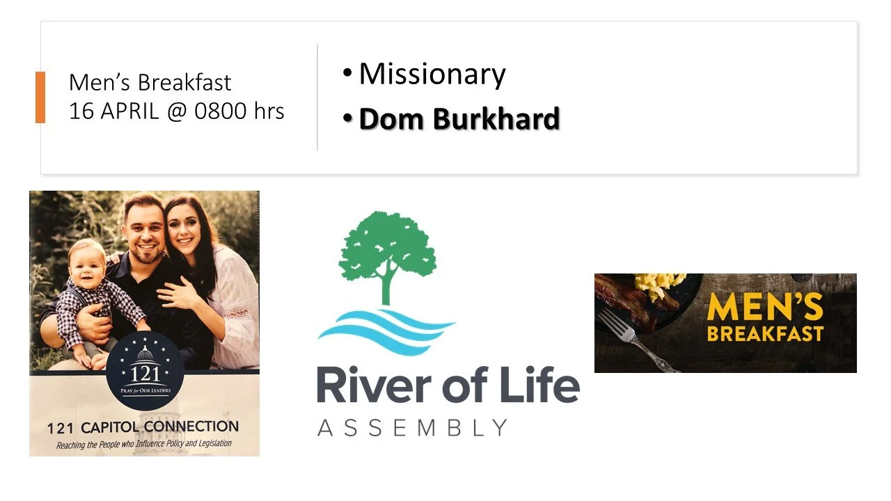 Men's Missionary Breakfast - 16 APRIL 8 am at River of Life A/G